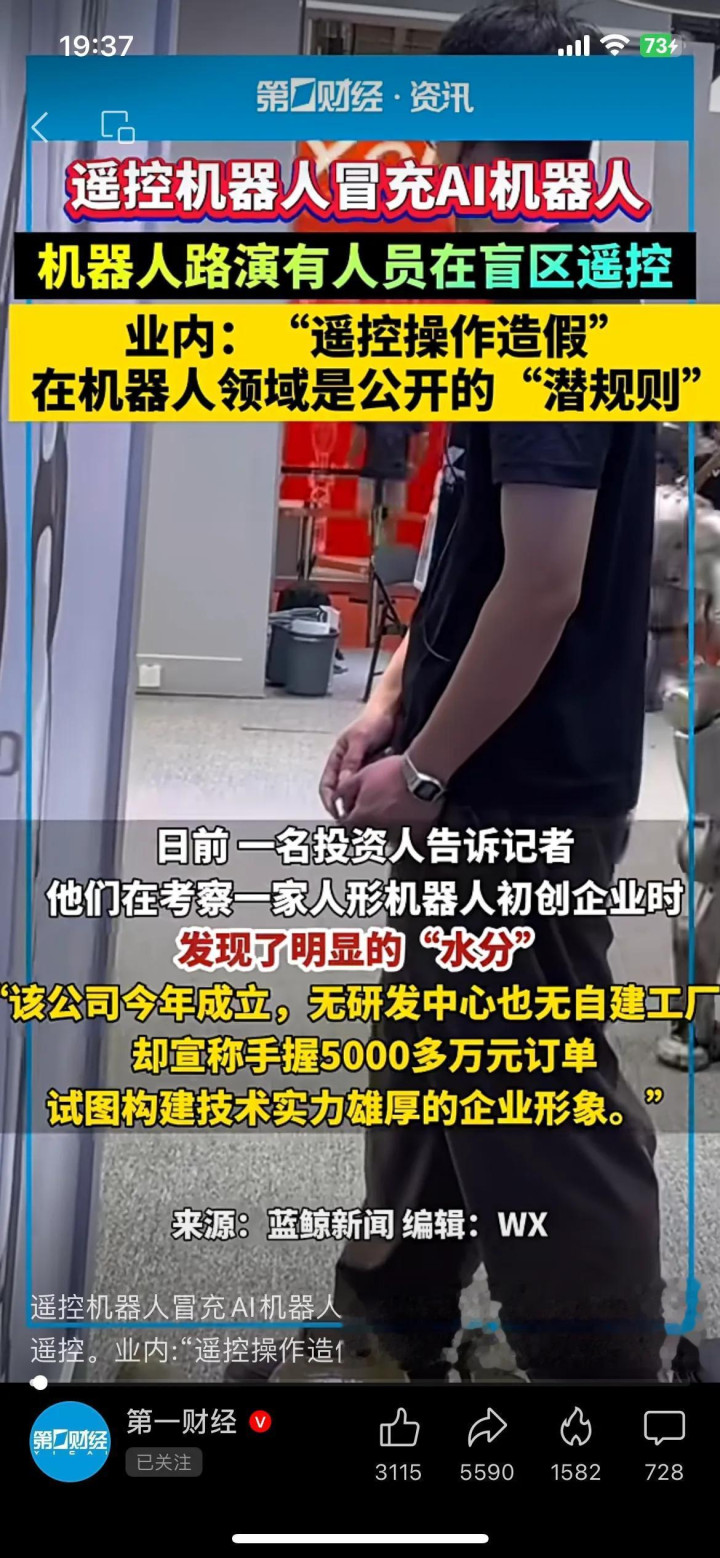 更绝的是,这居然不是“个案”。不少业内人说:不光小初创团队这么干,连有些叫得上名的公司都用过这招——美其名曰“人在回路的半自主技术”,说白了就是拿遥控器装AI,把“人工掰臂”包装成“智能算法突破”,专门糊弄投资。