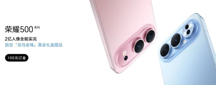 与此同时,荣耀500系列手机日前正式官宣,提供超级标准版和超级Pro版两款机型,对应荣耀500和荣耀500 Pro,提供海蓝宝、星光粉、月光银、曜石黑四款配色。