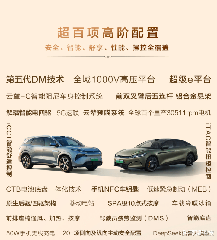 首先来看新能源技术层面,汉L EV、唐L EV实力非常彪悍,两款设备均支持超级e平台,拥有全球第一技术高达16项。不仅如此,全域千伏高压架构也有标配,这在全球乘用车领域尚属首次。其他方面包括闪充电池、3万转电机等,在业内非常罕见。对于那些容易产生续航焦虑的朋友,只需要5分钟充入400km续航,1000kW超高功率,让充电和加油速度几乎没有太大区别。