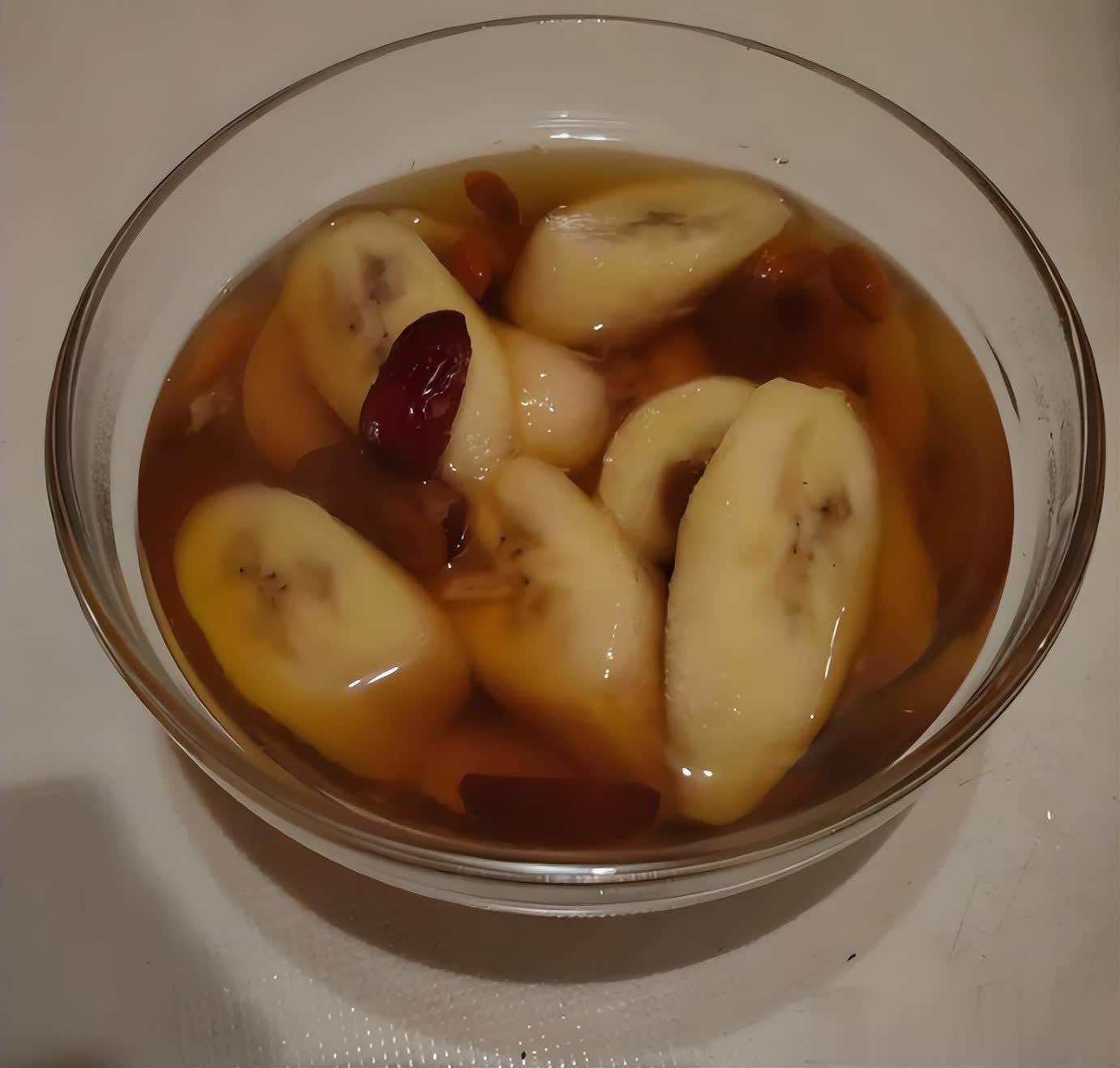 7. 过滤与享用:根据个人喜好,可以选择将汤水过滤,去除固体食材,保留清爽的液体,或者直接将所有食材一起享用。最后,将煮好的红枣枸杞香蕉水倒入杯中,即可饮用。