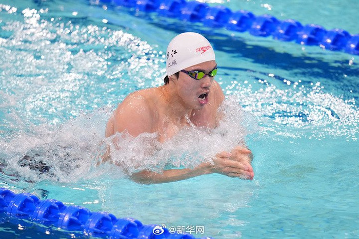在前三种泳姿过后,身处第八道的汪顺保持领先。进入最后100米自由泳,身后的湖南队黄志伟和河北队何宇博给了他很大压力,不过最终汪顺还是以4分14秒90的成绩率先触壁。